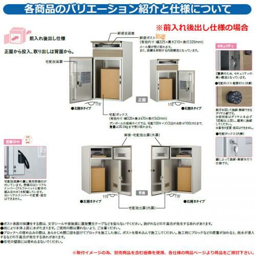 郵便ポストには投函・取出しを行う構造として「前入れ前出し」「前入れ後出し」「前入れ横出し」「上入れ上出し」「上入れ前出し」「上入れ後出し」など、多くのバリエーションがありますが、投函物を取り出す際どこから取り出すのかにより、構造が大きく変化します。ポストの設置場所に余裕がある方は問題ありませんが、狭小地では「前入れ前出し」や「上入れ前出し」など、前面部で操作が完結するポストが一番スリムでおすすめです。