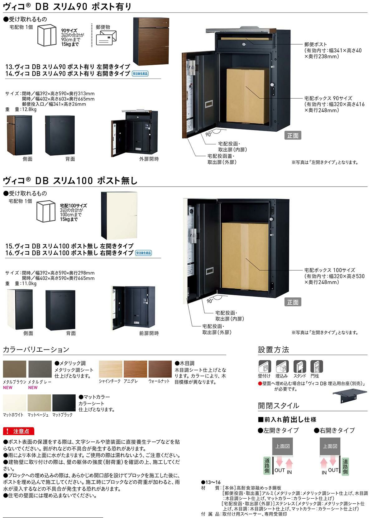 宅配ボックス フレムス Classic(クラシック) ポール埋め込みタイプ スリム 前出し R(右開き) FAL・HGK色
