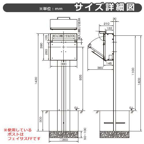 宅配ボックス フレムス Classic(クラシック) ポール埋め込みタイプ ミドル 前出し FAL・HGK色
