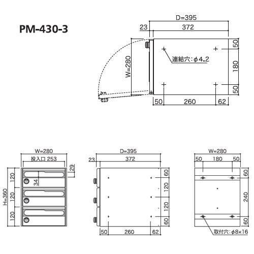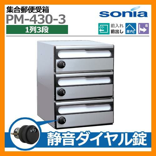 D-ALL 集合住宅用ポスト KS-MB3002PU-3LKT 可変ダイヤル錠 前入れ前出し 3戸用 タテ型