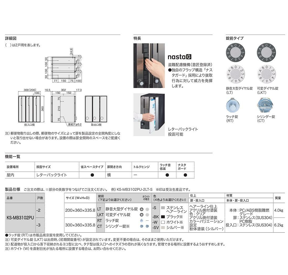 D-ALL 集合住宅用ポスト KS-MB3102PU-2LKT 可変ダイヤル錠 前入れ後出し 2戸用 タテ型