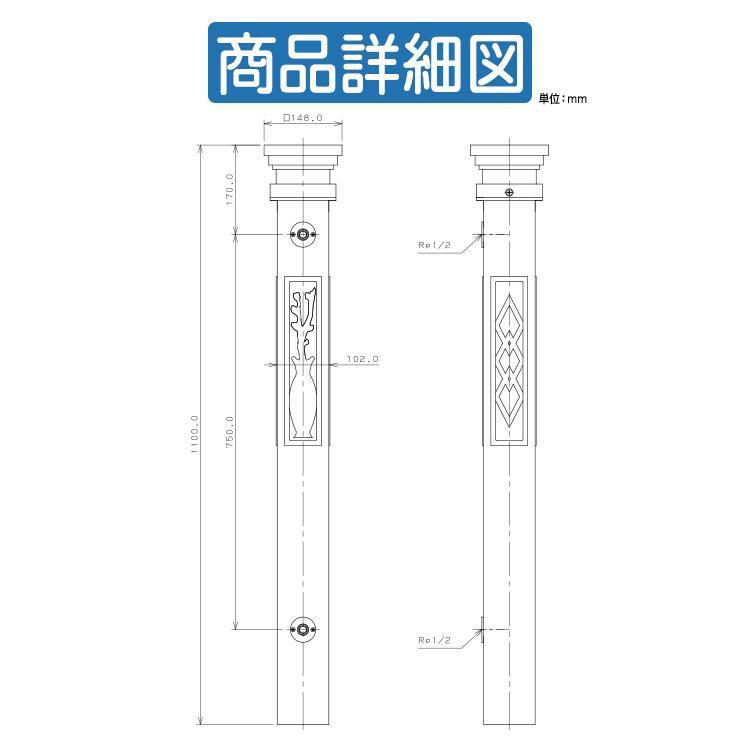 シンプルポストユニット 1型 照明なし本体 T13型ポスト(簡易錠) セット 上入れ前出し