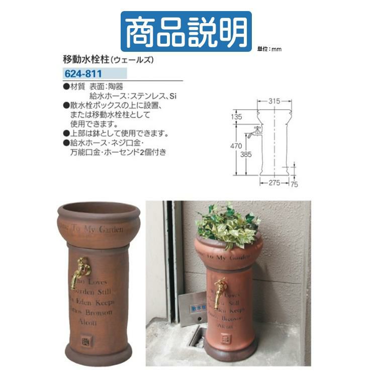 お庭にぴったりの水栓柱・立水栓を見つけるなら当店へ!お庭で使う水栓柱・立水栓をお探しなら、豊富な品揃えの当店にお任せください。水栓柱はガーデニングや洗車など、屋外での水作業に欠かせないアイテムです。デザイン次第でお庭の雰囲気が変わるため、こだわって選びたいものです。当店では、お庭の雰囲気やご希望に合わせて、おしゃれで実用的な水栓柱をお選びいただけます。例えば、スタイリッシュなステンレス製や、木目調で温かみのあるデザインなど、幅広い品揃えをご用意しております。さらに、最新商品も続々入荷しており、デザイン性と機能性を考慮したアイテムが勢ぞろいです。耐久性や省スペース設計にもこだわり、お客様のニーズに合った商品をご提案します。「イメージに合う商品が見つかるショップ」として、お庭に最適な水栓柱・立水栓を豊富に取り揃えております。理想のお庭づくりをサポートする当店で、快適でおしゃれなガーデンライフを叶えませんか?