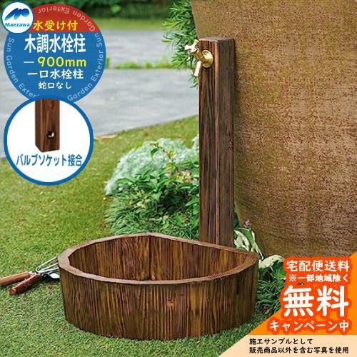 木調水栓柱 バルブソケット接合 高さ:900mm 一口水栓柱 木調水栓パン ガーデンパンセット HI-1WD×900-60DB