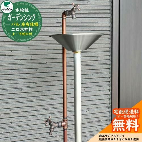 立水栓 水栓柱 ユニソン ガーデンシンク バル 左右仕様 蛇口2個セット カラー:セピア