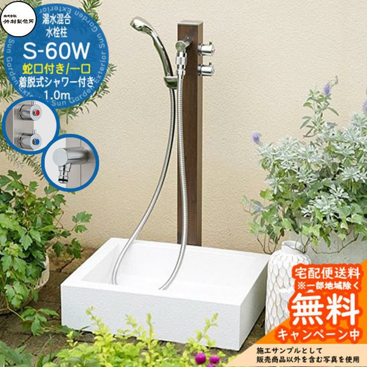 一口水栓柱 湯水混合水栓柱 S-60W 1.0m(蛇口・着脱式シャワー付き付)