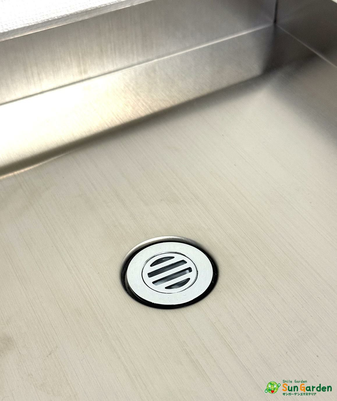 また、水受けの目皿はねじ込み固定式を採用したことで、玉砂利や人工芝などを敷き詰めても、目皿がずれることがないので、配管に詰まる心配もなく安全にアレンジが可能です。