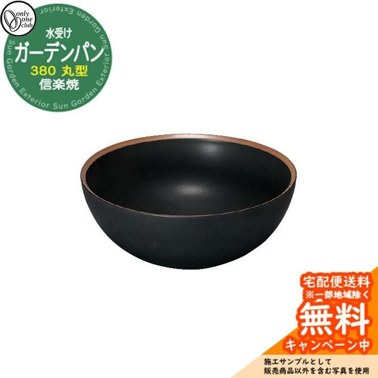 水受け ガーデンパン ガーデンパン信楽焼シリーズ 380 丸型 火色サークル 黒マット ガーデンパンのみ