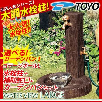 ウォータービュー コテージポールL 二口水栓柱 補助蛇口付属 丸型コテージパンL ガーデンパンセット 上部蛇口別売