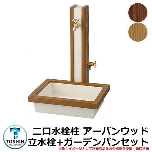 二口立水栓 水栓柱 アーバンウッド 立水栓+ガーデンパン トレビ アーバンウッド セット