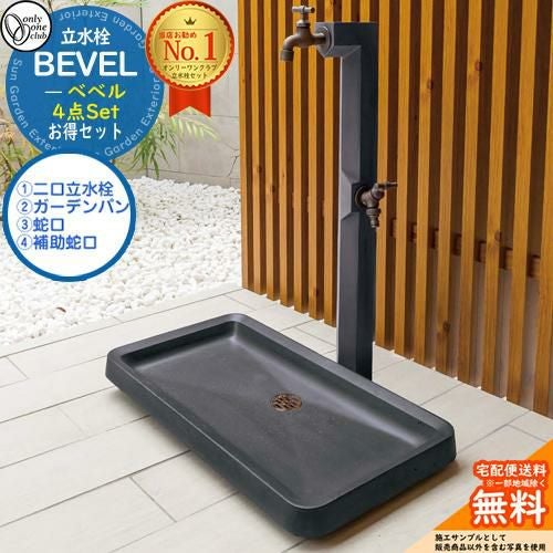 水栓柱 立水栓 おしゃれ オンリーワン 4点 お得セット 1点目:水栓柱 ベベル 2点目:ガーデンパン ベベル ヒラ 3点目:蛇口I字ハンドル 4点目:補助蛇口I字ハンドル