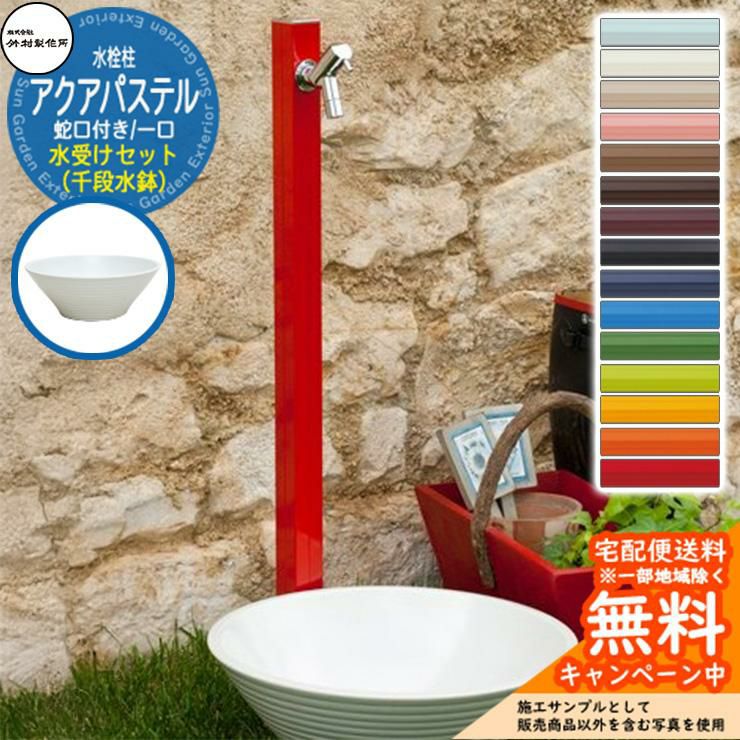 アクアパステル S-40K 1口 蛇口付属 + 水受け 【千段水鉢 立水栓セット】
