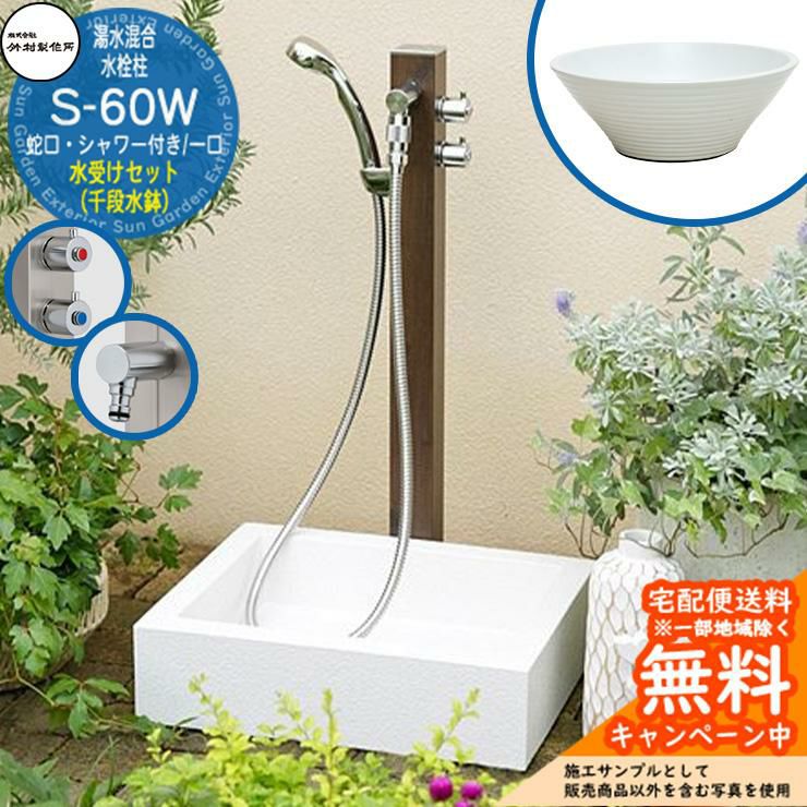 S-60W 1口 蛇口・シャワー付水栓柱+水受け【千段水鉢 立水栓セット】