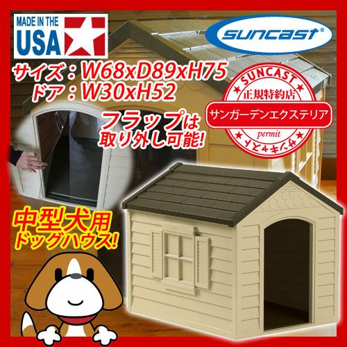 仕様 中型犬用ドッグハウス(アメリカ製)/ドア部分にフラップ付き(フラップの取外し可能)