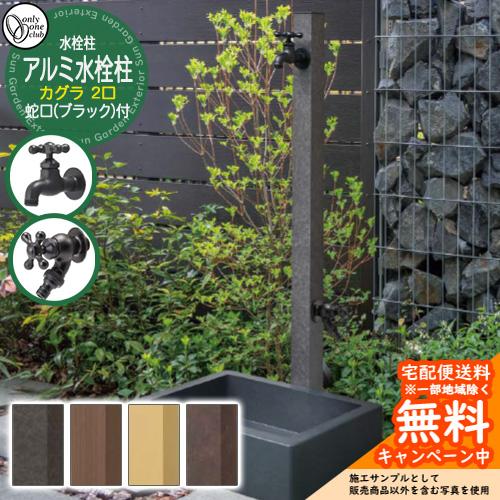 水栓柱 二口水栓柱 アルミ水栓柱 カグラ 蛇口(ブラック)1個付き
