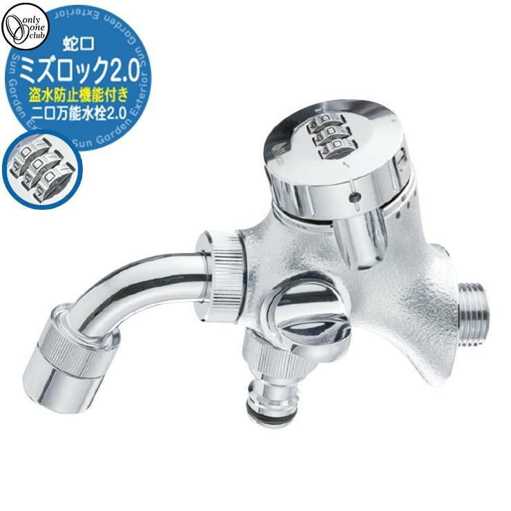 蛇口 ミズロック2.0 二口万能水栓2.0 盗水防止機能付き
