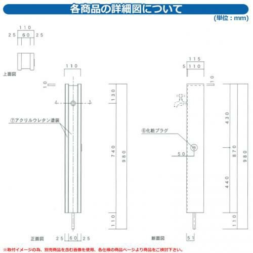 シンプルポストユニット 1型 照明なし本体 T13型ポスト(簡易錠) セット 上入れ前出し