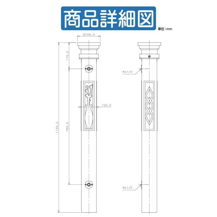 シンプルポストユニット 1型 照明なし本体 T13型ポスト(簡易錠) セット 上入れ前出し