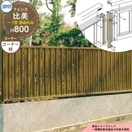 フェンス 三協アルミ 形材フェンス 比美1型 H800専用 オプションコーナー部品のみ コーナー材(1本)