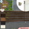 デザインは、横ルーバータイプの木調色のよこ板格子板と形材色の縁取りが美しい横板格子フェンスです。