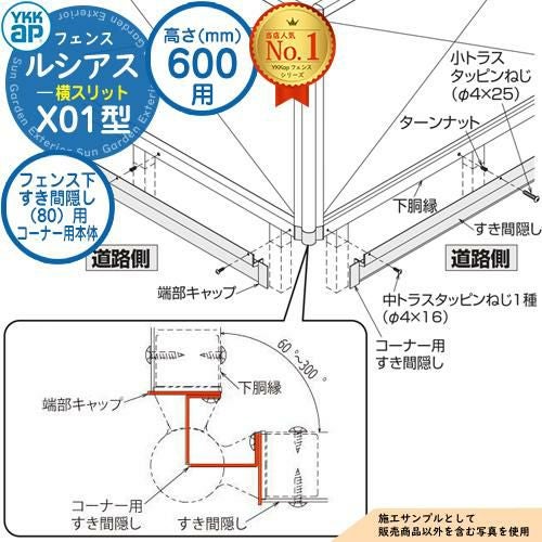 YKKap ルシアスフェンス X01型 H600専用 フェンス下すき間隠し(80)用 コーナー用本体