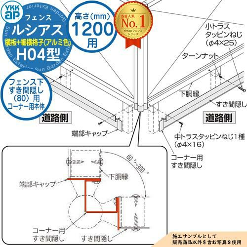 セット内容 ■【2025年モデル】ルシアス フェンスH04型 T120専用 フェンス下すき間隠し(80)用 コーナー用本体(L=2110)