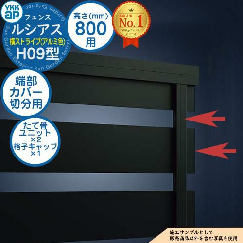 ルシアスフェンスH09型 H800タイプ(T80) 専用 端部カバー(切分用) アルミカラー たて骨ユニット×2 格子キャップ×1