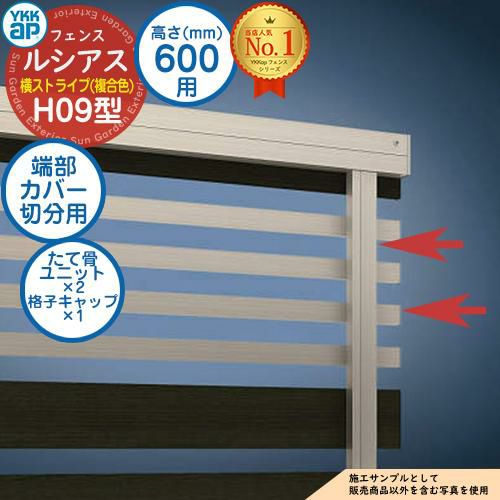 ルシアスフェンスH09型 H600タイプ(T60) 専用 端部カバー(切分用) 複合カラー たて骨ユニット×2 格子キャップ×1
