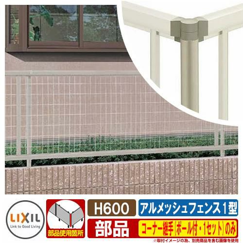 アルメッシュフェンス フリーポールタイプ 1型 H600(T-6) コーナー継手(ポール付・1セット)のみ