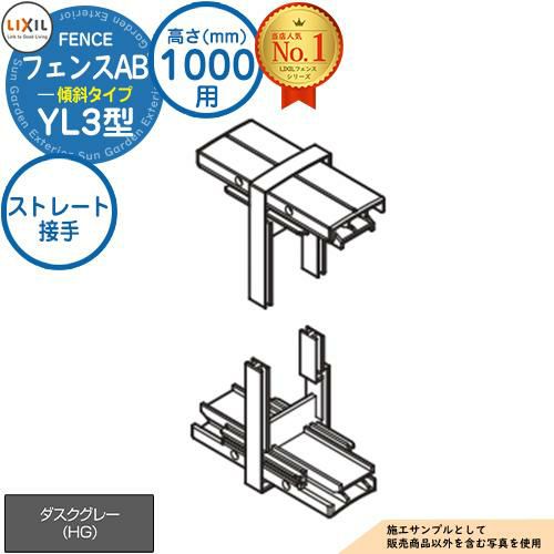 フェンス LIXIL フェンスAB YL3(傾斜)型 ダスクグレー H1000タイプ(T-10サイズ) ストレート接手