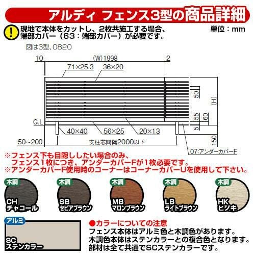四国化成 自由支柱 横格子フェンス ADFR3 63TC-06SC ラティスフェンス ルーバーフェンス 目隠しフェンス 屋外 アルミ