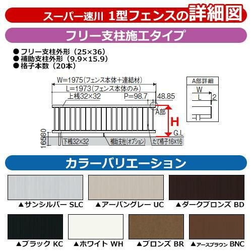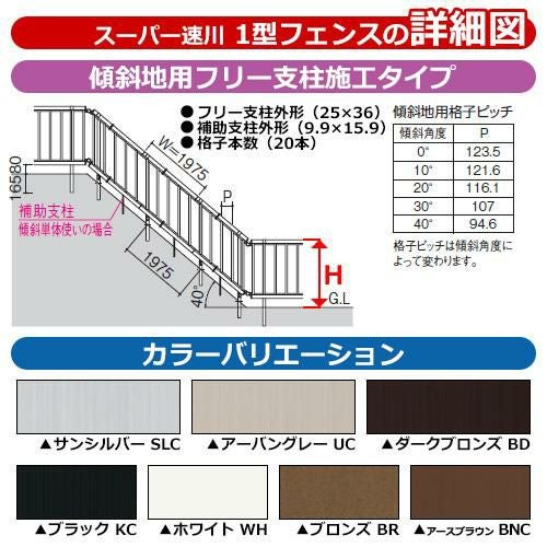 形材フェンス スーパー速川1型 H1000タイプ専用 呼称:2010S オプションポールのみ 傾斜地用フリー支柱