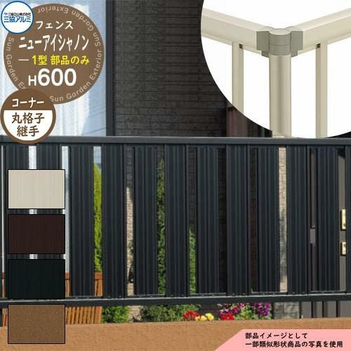 形材フェンス ニューアイシャノン1型 H600タイプ専用 呼称:2006 オプションコーナー部品のみ コーナー材:丸格子
