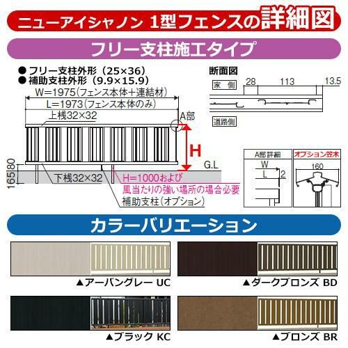 形材フェンス ニューアイシャノン2型 H1000タイプ専用 呼称:2010 オプション補助支柱のみ(1本:平地用)