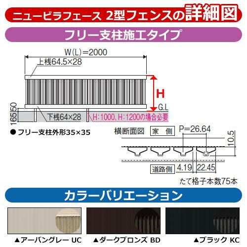 形材フェンス ニュービラフェース2型 H1000タイプ専用 呼称:2010 オプションポールのみ フリー支柱
