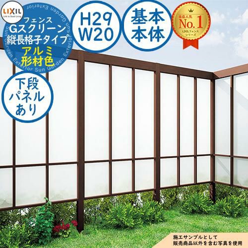 フェンス 目隠し 屋外 Gスクリーン 縦長格子タイプ(下段クリアマットパネルあり) アルミ形材色 基本本体:H29・W20