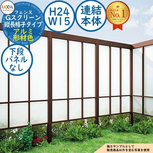 フェンス 目隠し 屋外 Gスクリーン 縦長格子タイプ(下段クリアマットパネルなし) アルミ形材色 連結本体:H24・W15