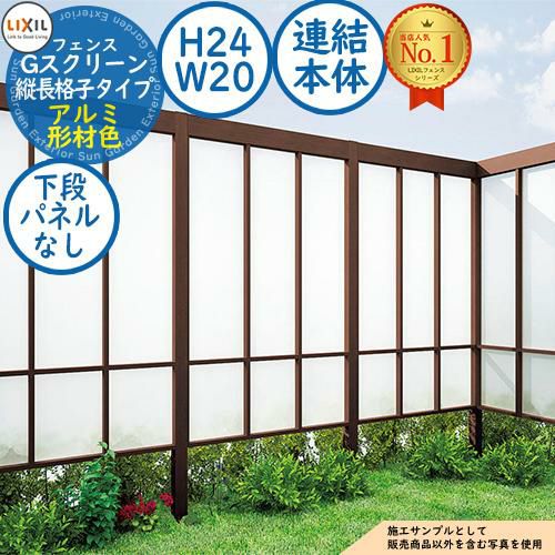 フェンス 目隠し 屋外 Gスクリーン 縦長格子タイプ(下段クリアマットパネルなし) アルミ形材色 連結本体:H24・W20