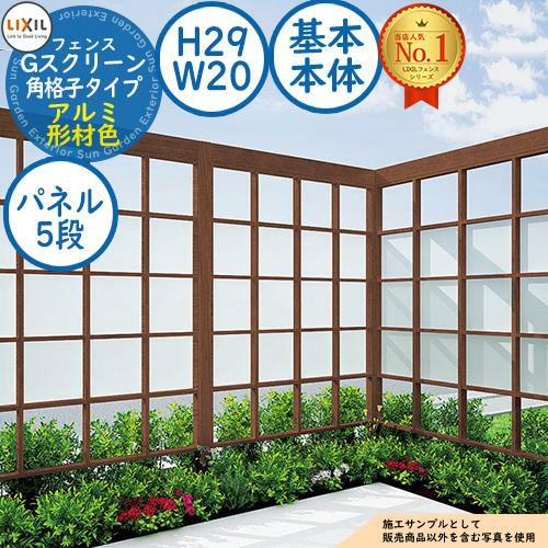 フェンス 目隠し 屋外 Gスクリーン 角格子タイプ(クリアマットパネル段数:5段) アルミ形材色 基本本体:H29・W20
