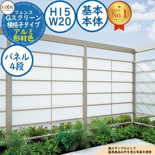 フェンス 目隠し 屋外 Gスクリーン 横格子タイプ(クリアマットパネル段数:4段) アルミ形材色 基本本体:H15・W20
