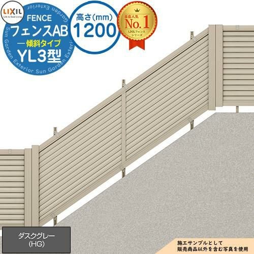 フェンス LIXIL フェンスAB YL3(傾斜)型 ダスクグレー H1200タイプ(T-12サイズ) フェンス本体(1枚)のみ