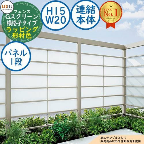 フェンス 目隠し 屋外 Gスクリーン 横格子タイプ(クリアマットパネル段数:1段) ラッピング形材色 連結本体:H15・W20