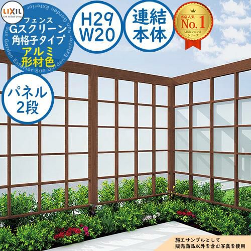 Gスクリーン 角格子タイプ(クリアマットパネル段数:2段) アルミ形材色 連結本体:H29・W20