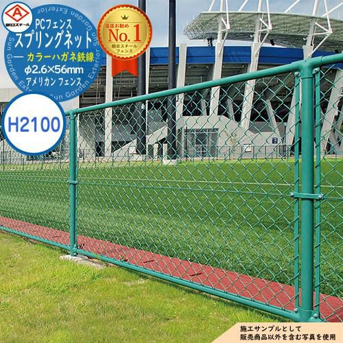 フェンス 目隠し 屋外 朝日PCフェンス スプリングネット カラーハガネ鉄線 φ2.6×56mm PC-A2100【柱は鉄線と同色】