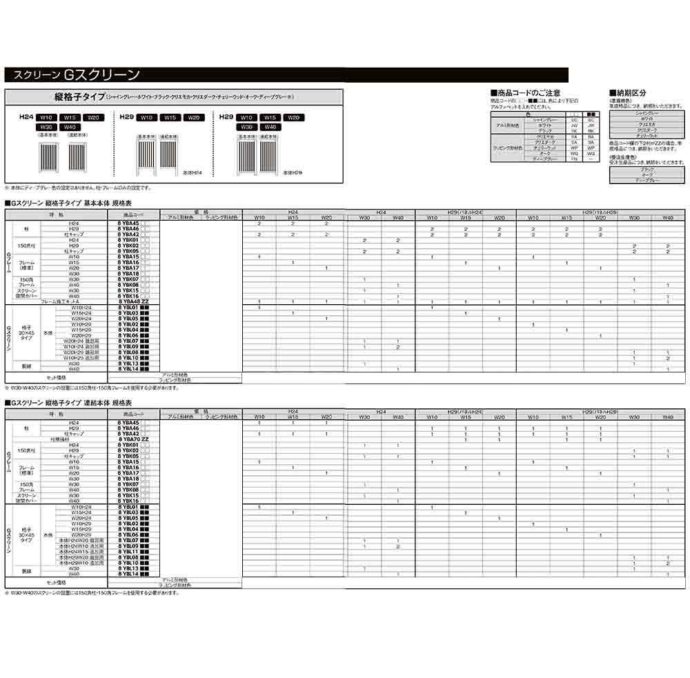 Gスクリーン 縦格子タイプ ラッピング形材色 基本本体:H29・W30