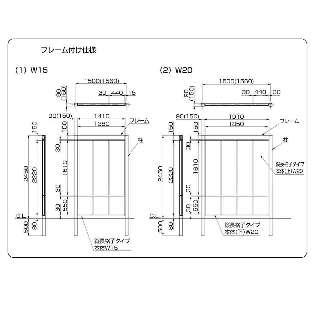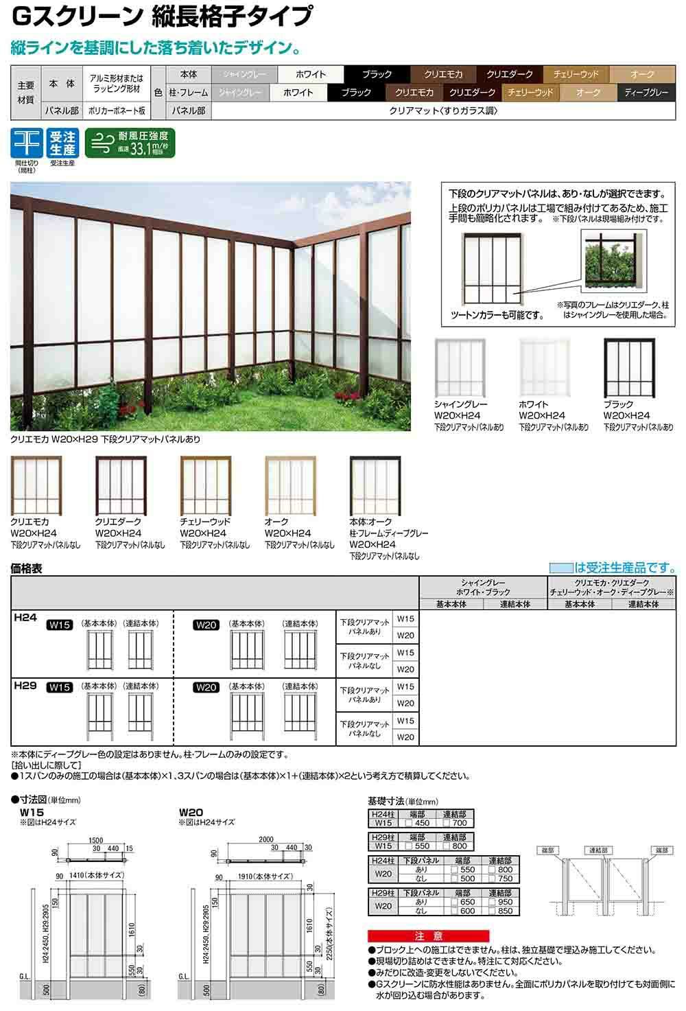 Gスクリーン 縦長格子タイプ(下段クリアマットパネルあり) ラッピング形材色 基本本体:H29・W15