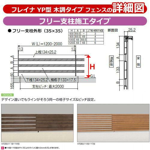 形材フェンス フレイナYP型 木調タイプ H600タイプ専用 呼称:2006 オプションポールのみ フリー支柱(木調色)