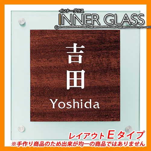 インナーグラスはガラスとガラスの間に和紙や木目テクスチャーを挟みこんだ立体感のある上品なガラス表札です。