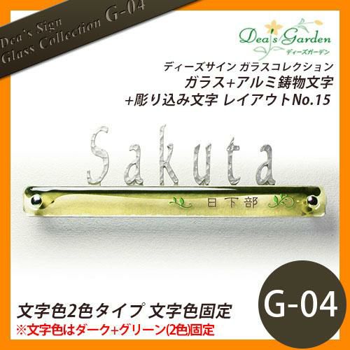 表札 ガラス表札 ディーズサイン ガラスコレクション G-04 ガラス+アルミ鋳物文字+彫り込み文字 レイアウトNo.15 文字色2色タイプ 文字色固定