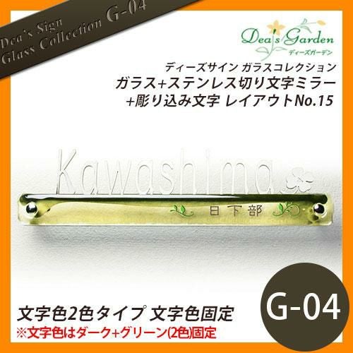 表札 ガラス表札 ディーズサイン ガラスコレクション G-04 ガラス+ステンレス切り文字ミラー+彫り込み文字 レイアウトNo.15 文字色2色タイプ 文字色固定